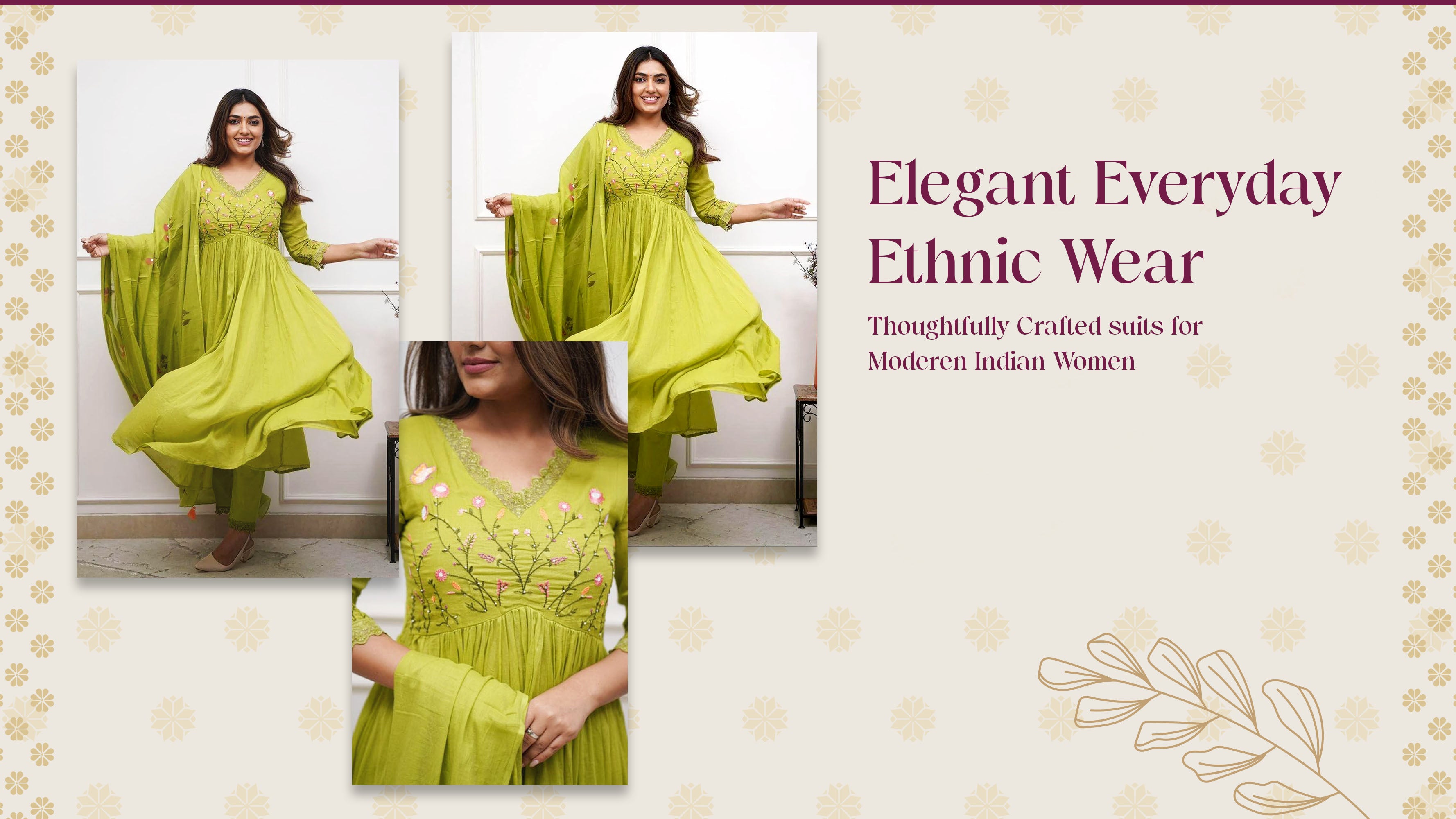 Green embroidered ethnic pur mul cotton kurta set for women by Kyathi